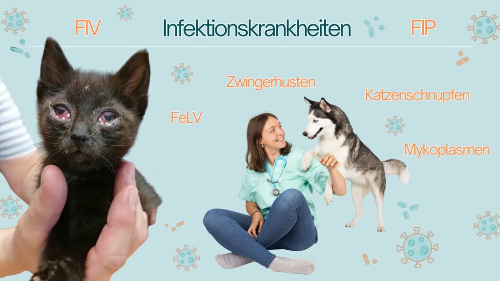 Infektionskrankheiten sind bei unseren Haustieren häufig. Sie zeigen häufig sehr ähnliche und gleichzeitig unspezifische Symptome. Dabei können sich dahinter verschiedenste Infektionserreger verbergen: Viren, Bakterien, Pilze oder Parasiten. Klassische Virusinfektionen sind der Katzenschnupfen, die Infektion mit dem felinen Leukämievirus (FeLV), dem felinen Immundefizienzvirus (FIV), die feline infektiöse Peritonitis oder der Zwingerhusten beim Hund. Umso wichtiger ist eine gezielte Diagnostik, die zwischen akuten, chronischen und potenziell ansteckenden Erregern und Krankheitsverläufen unterscheiden kann.